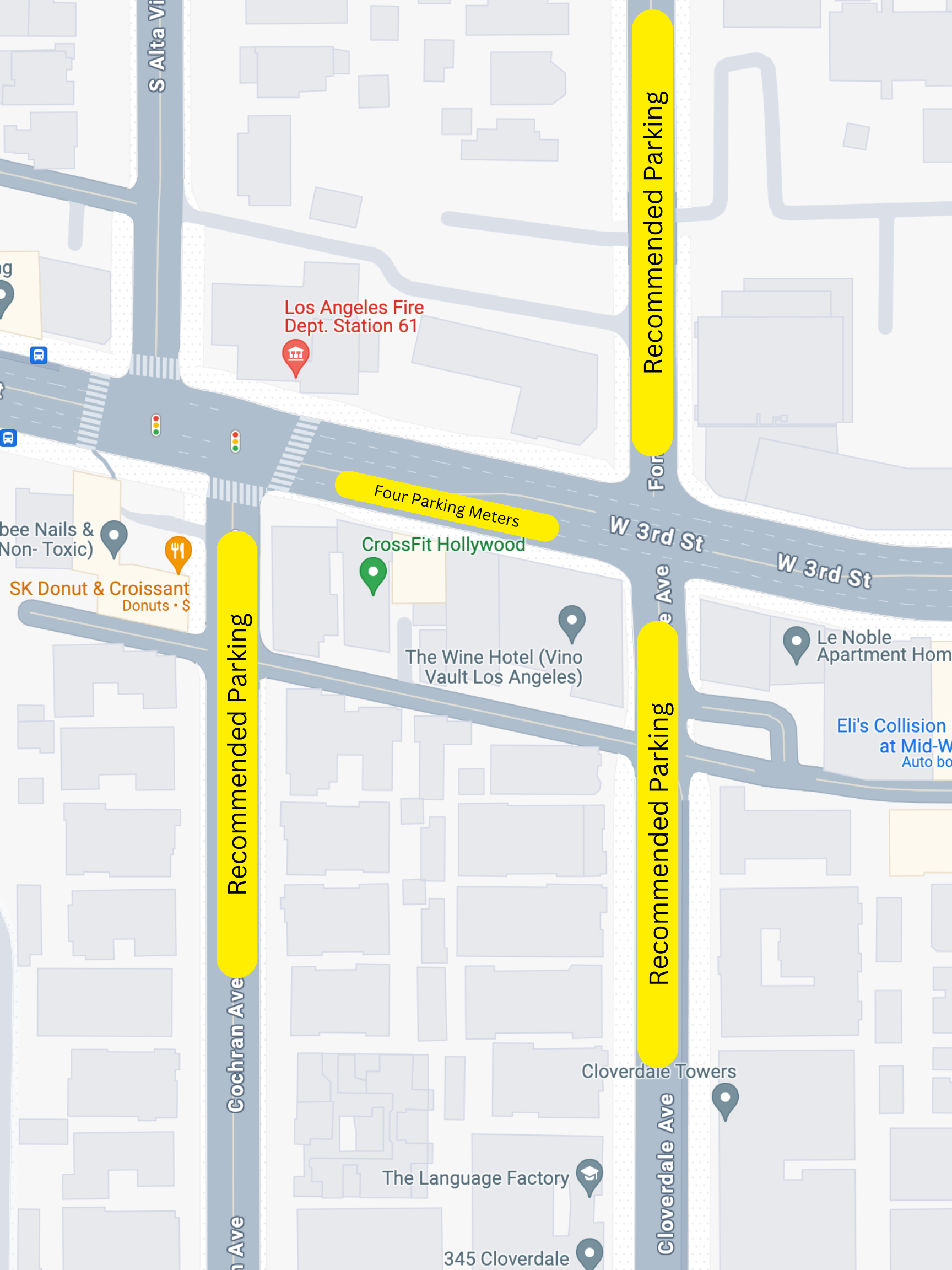 We currently do not have dedicated parking, but we recommend free street parking on Cochrane, Cloverdale, and Formosa. There are also parking meters directly in front of the gym.